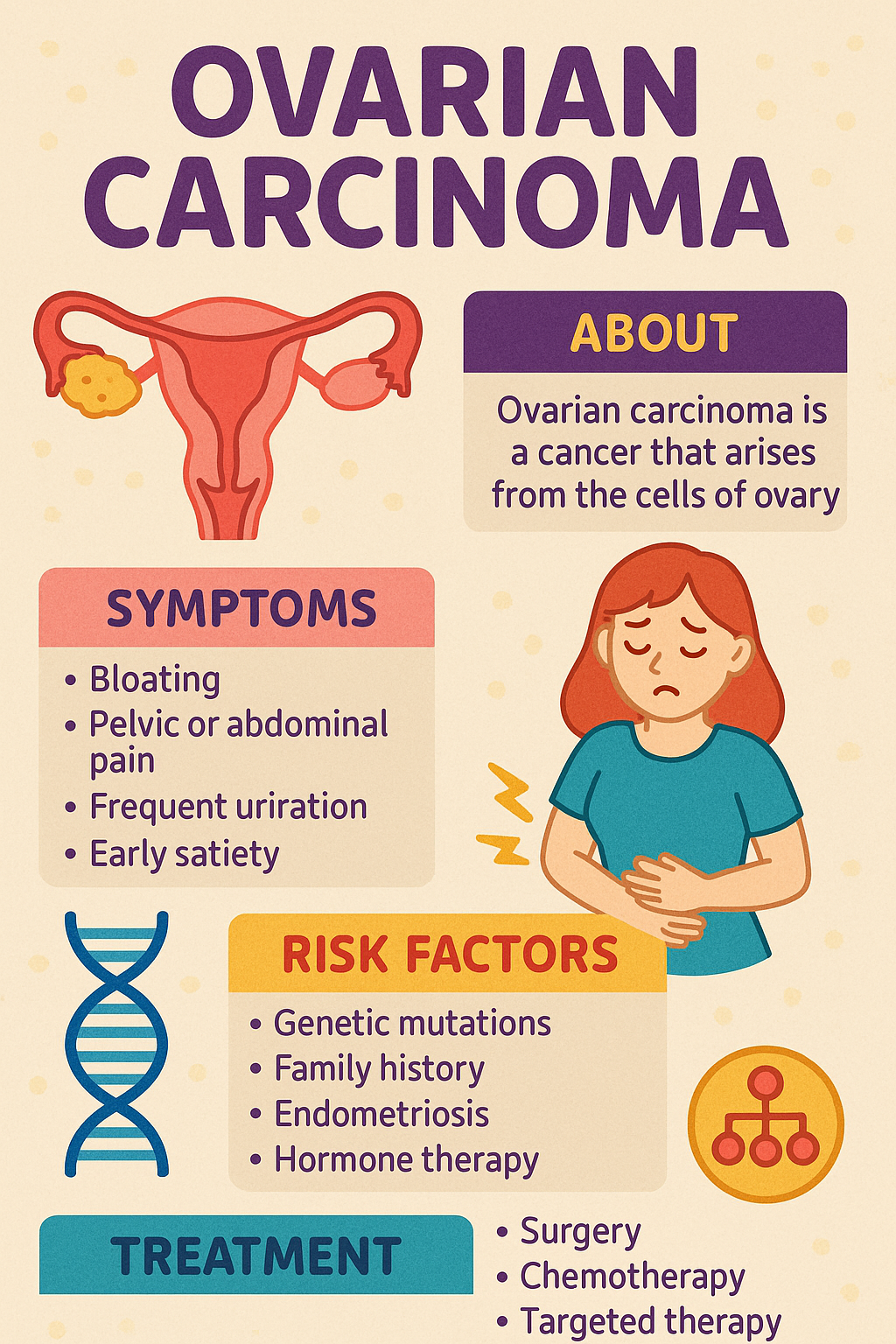 Ovarian cancer is a type of cancer that starts in a woman’s ovaries, the small organs that produce eggs and female hormones. It is often called a “silent killer” because it usually develops without clear symptoms in the early stages, making it difficult to detect. The exact cause is unknown,