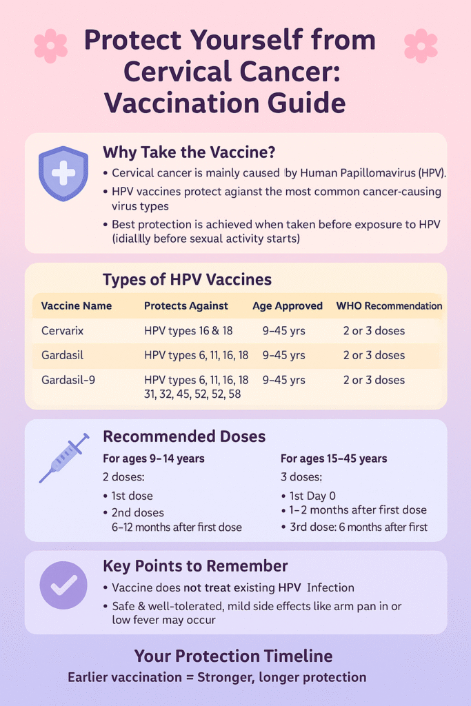 HPV vaccination is a simple step that can save lives. Combined with regular cervical cancer screening later in life, it offers powerful protection for women’s health. Talk to your doctor today about getting vaccinated for yourself or your child. Prevention is always better than cure.